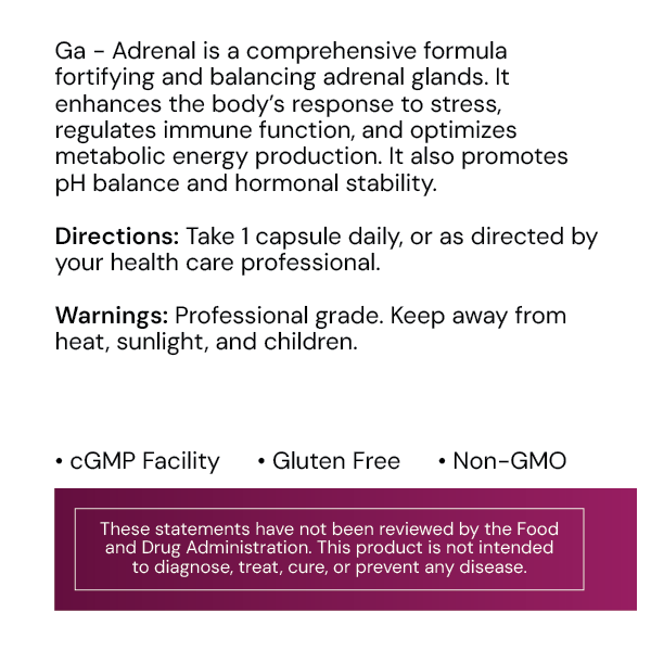The great body chemistry (pH) balancing formula via the adrenal glands. Builds energy and balances pH. Through providing support for both the adrenal medulla and cortex, this formula supports the fundamental energy process, retention of minerals in serum, and supports stressed adrenal glands.